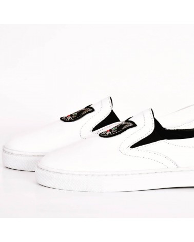 Les Slip-On en cuir blanc de Lilou By OJ représente un modèle sans lacets confortable de qualité supérieure qui allie tendance et confort.