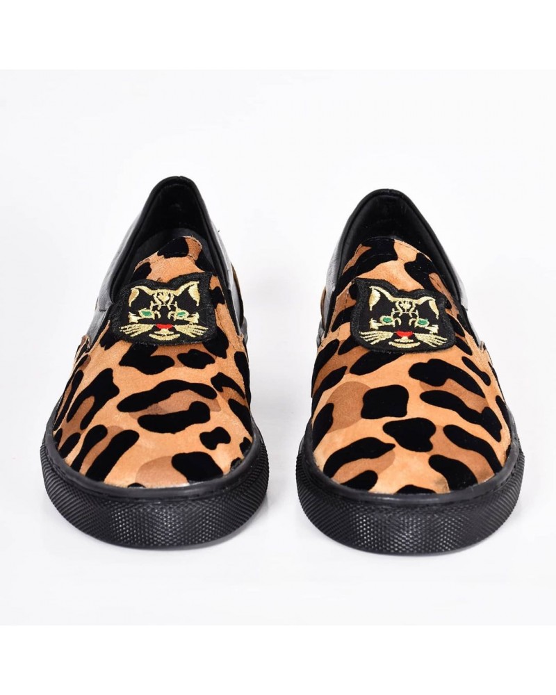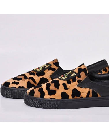 Les Slip-On léopard en cuir de Lilou By OJ représente un modèle sans lacets confortable de qualité supérieure qui allie tendance et confort.