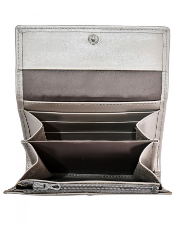 Le portefeuille blanc nacré à rabat de la collection Mignon en cuir véritable, votre compagnon inséparable, est un accessoire très complet qui vous permettra une organisation optimale de toutes vos cartes, votre monnaie ainsi que tous vos papiers importants.