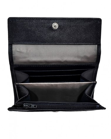 Le portefeuille bleu marine à rabat de la collection Mignon en cuir véritable, votre compagnon inséparable, est un accessoire très complet qui vous permettra une organisation optimale de toutes vos cartes, votre monnaie ainsi que tous vos papiers importants. Il dispose de nombreux rangements et de nombreuses fentes pour les cartes de crédit et une poche avec fermeture à glissière pour la monnaie.
