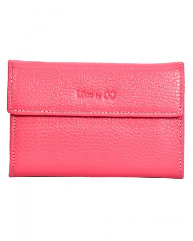 Portefeuille cuir grainé en rose