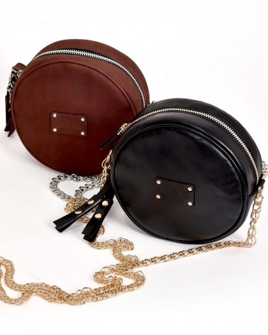 Ce petit sac adorable marron avec sa forme ludique rond ,100% cuir est pratique à porter en journée comme en soirée.